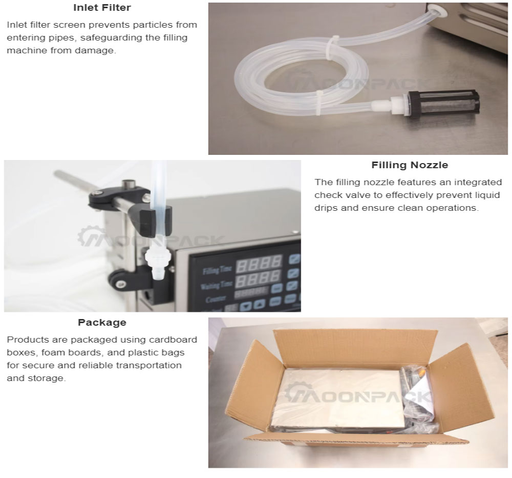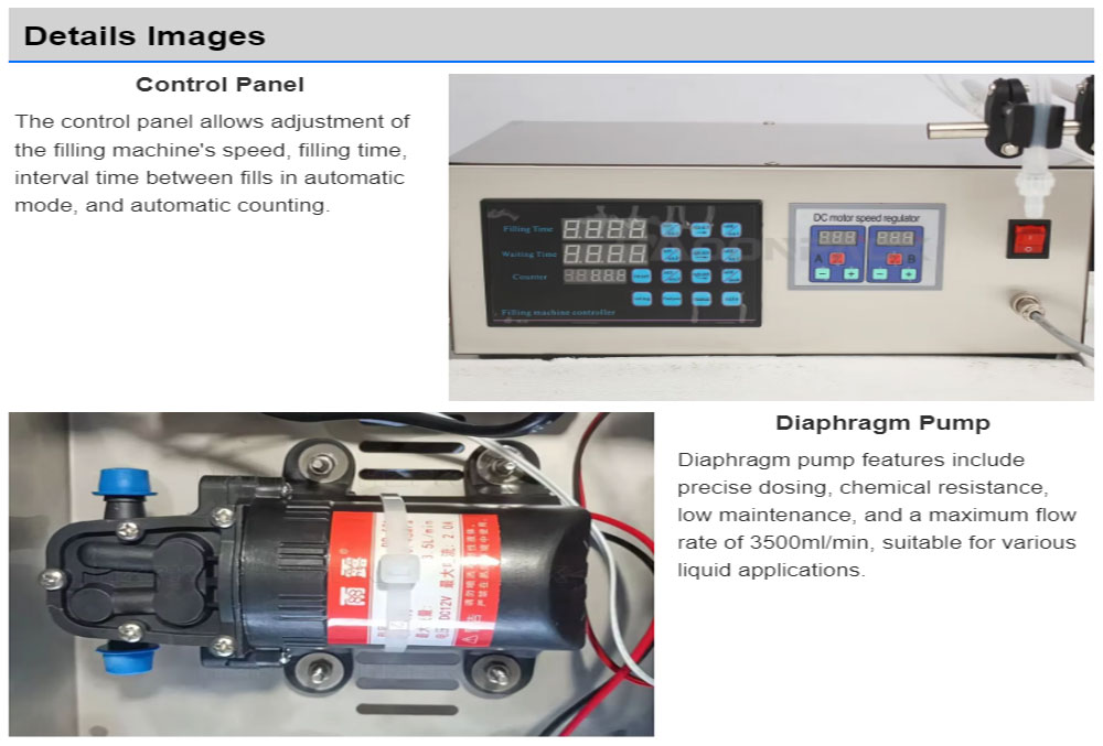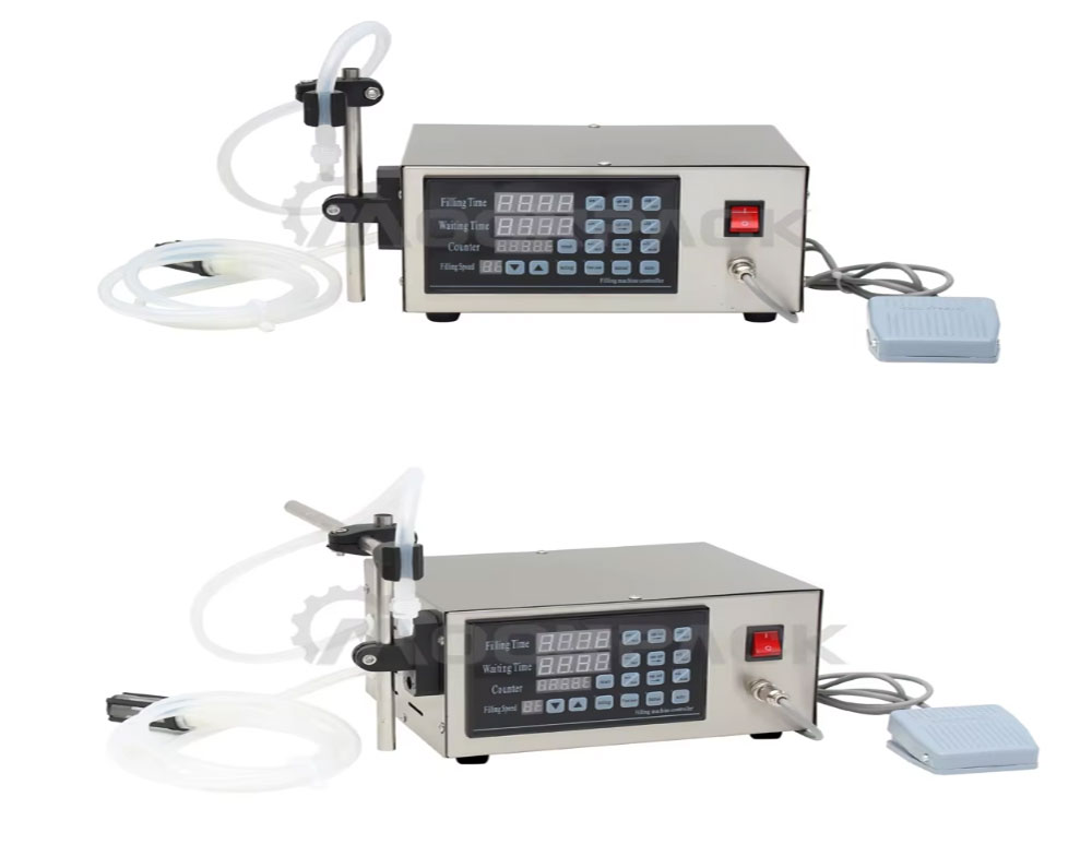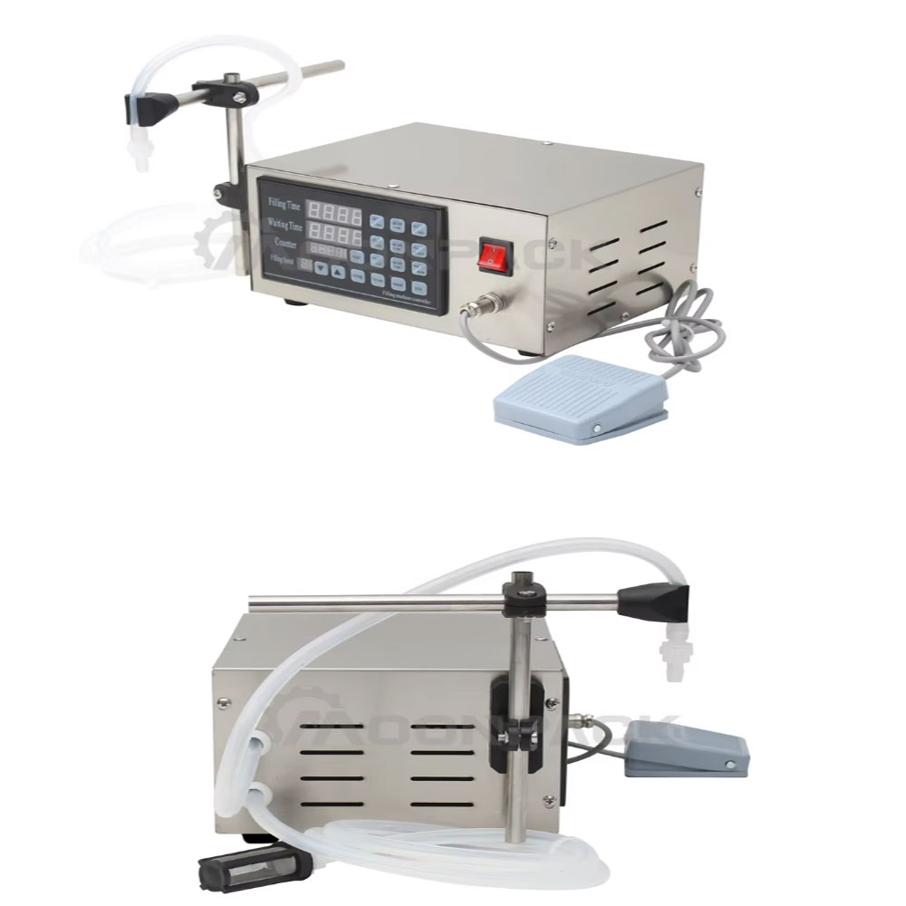 The small digital liquid filling machine is ideal for various liquid products, such as water, oils, beverages.