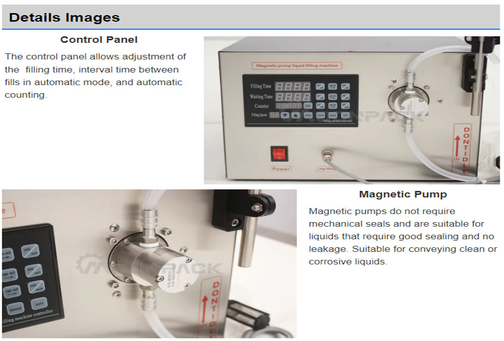 Our magnetic pump single head digital filling machine is designed for efficient filling of liquids and is suitable for a wide range of liquid products such as water, milk, perfume and so on. It adopts advanced digital technology to ensure accurate filling and improve production efficiency, and is widely used in daily chemical, food and beverage industries. With its compact structure and simple operation, it can meet the production needs of enterprises of different sizes.