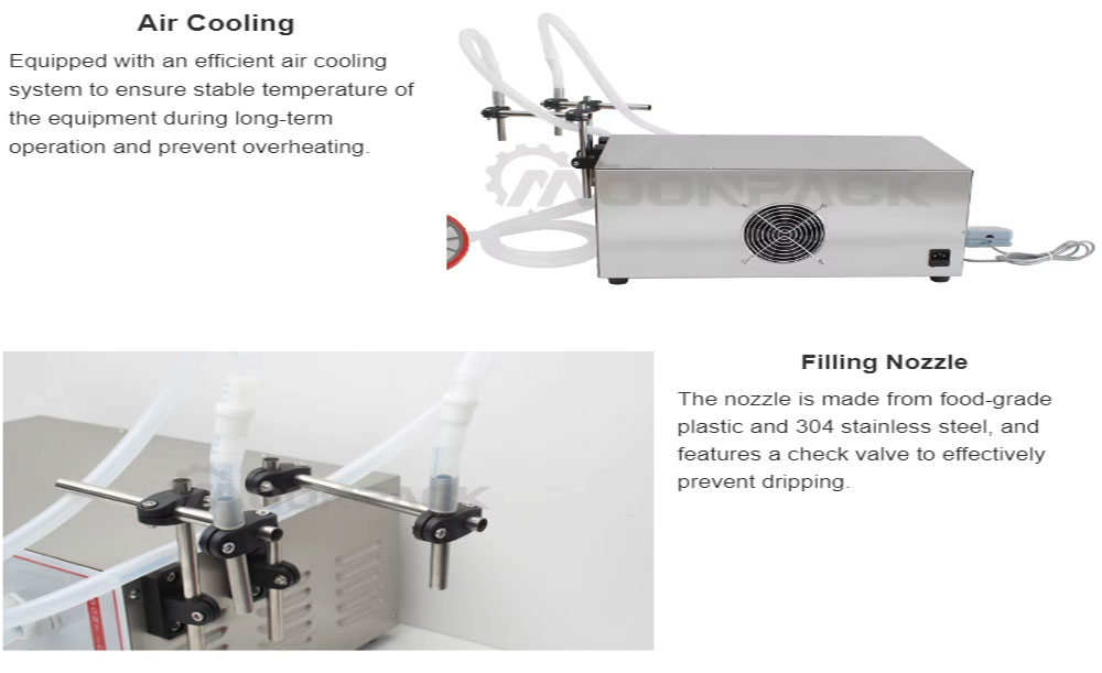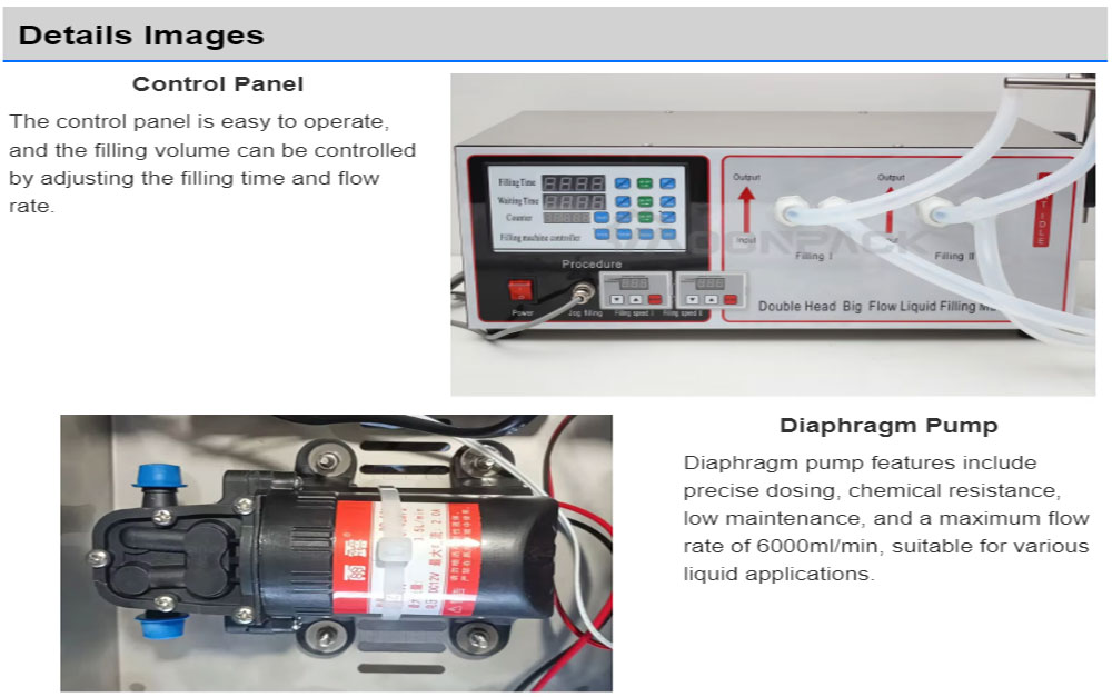 The GFK-1000-2 double-head diaphragm pump filling machine has a wide range of filling volume.