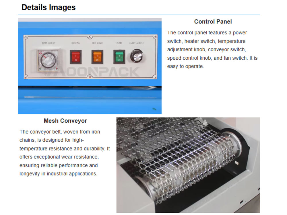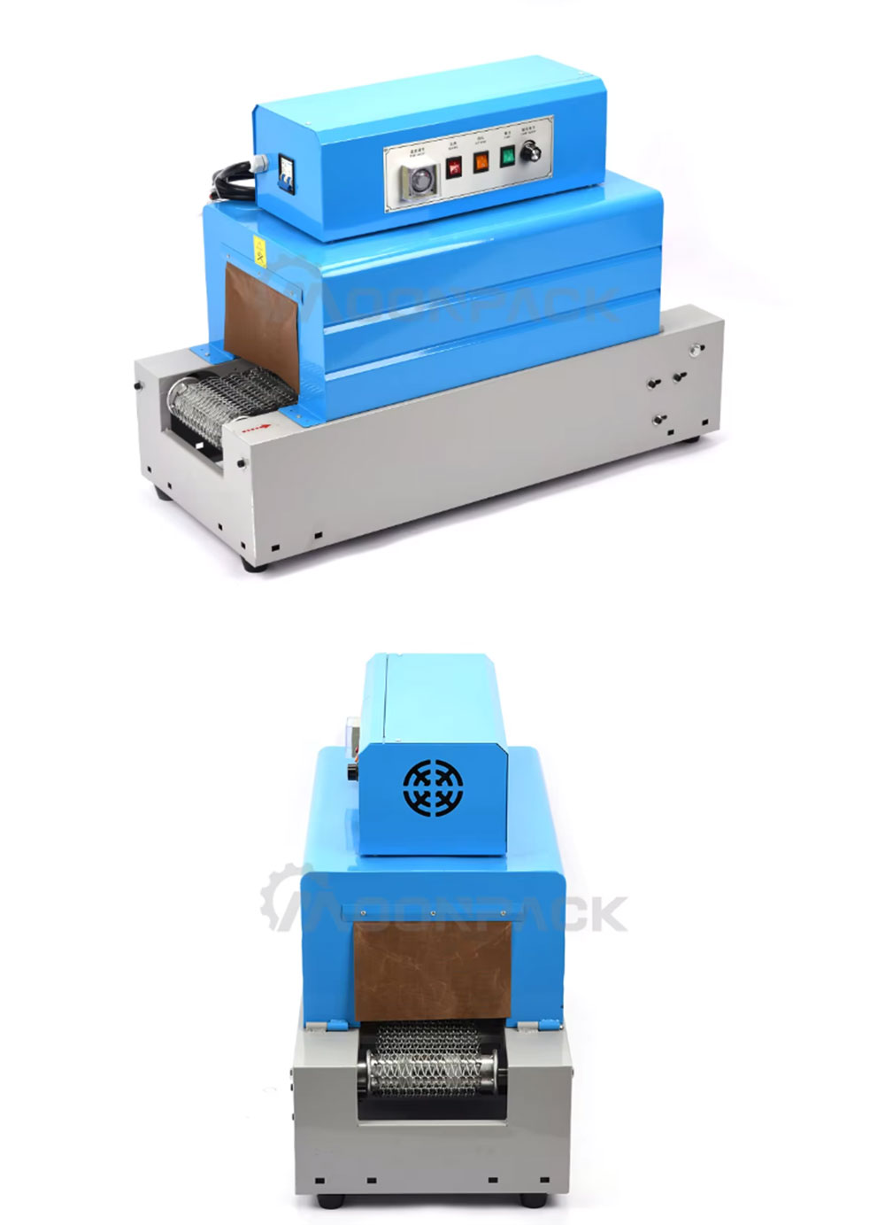 The shrink machine excels in rapidly heating shrink films for quick packaging. Utilizing quartz tubes and fans, it ensures uniform shrinkage of films like PVE, PP, and POF, enhancing packaging aesthetics while minimizing energy consumption and adhering to environmental standards. Widely used in food, beverage, and cosmetic industries, it combines efficiency with versatility to meet diverse packaging needs.