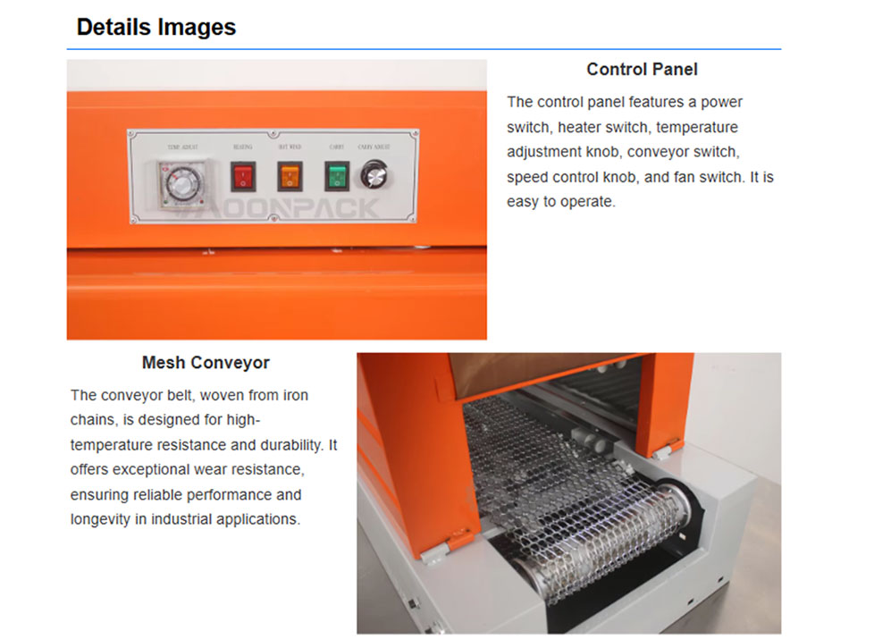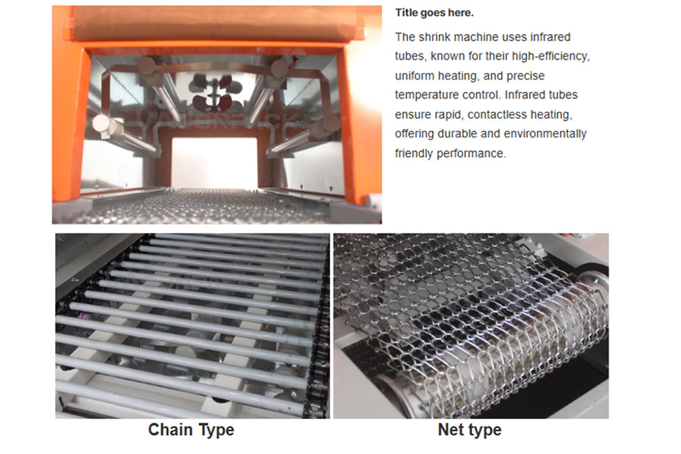 The shrink machine excels in rapidly heating shrink films for quick packaging. Utilizing Quartz Tube and fans, it ensures uniform shrinkage of films like PVE, PP, and POF, enhancing packaging aesthetics while minimizing energy consumption and adhering to environmental standards. Widely used in food, beverage, and cosmetic industries, it combines efficiency with versatility to meet diverse packaging needs.