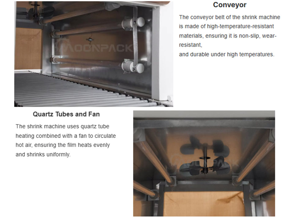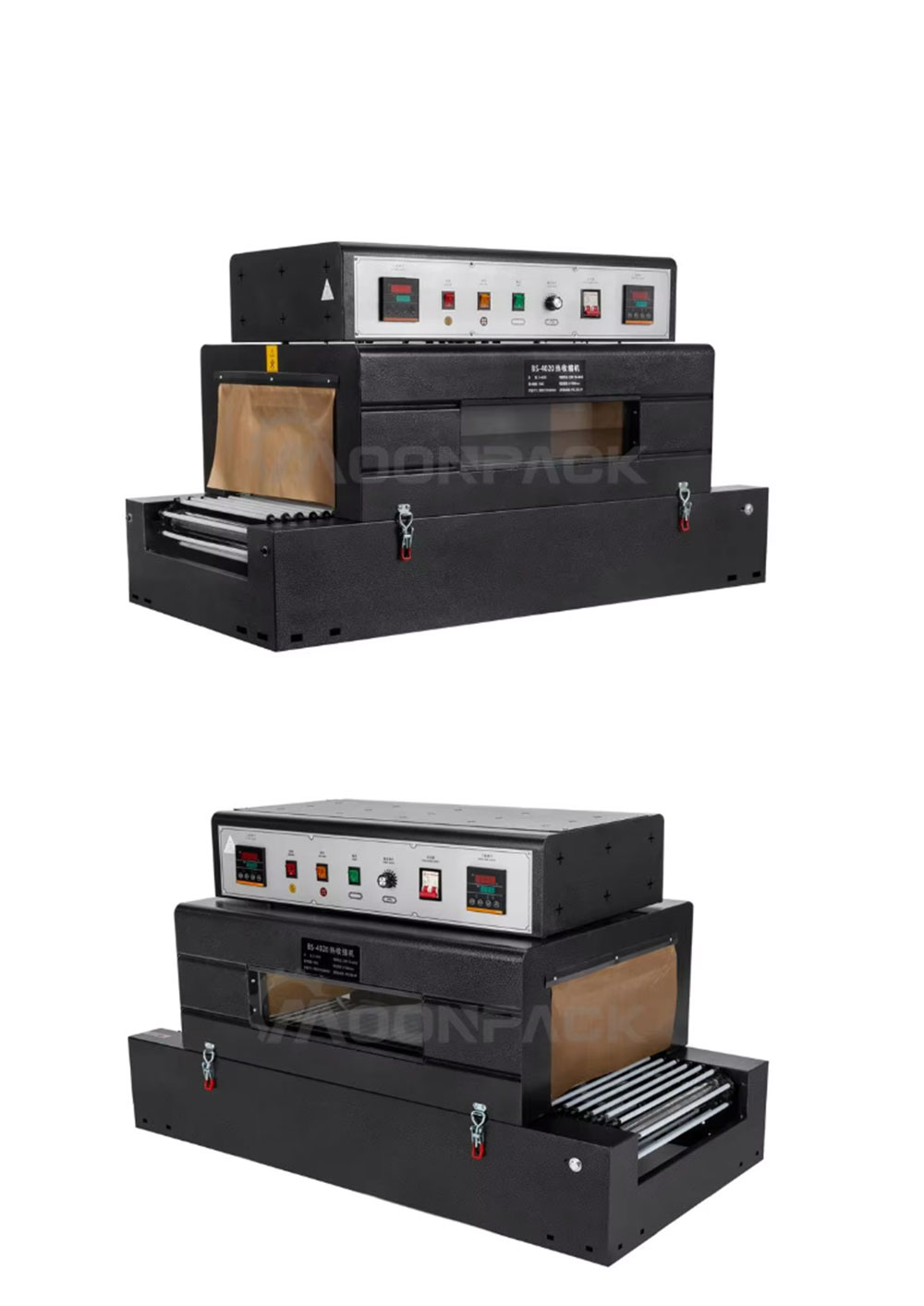 The shrink machine excels in rapidly heating shrink films for quick packaging. Utilizing quartz tubes and fans, it ensures uniform shrinkage of films like PVE, PP, and POF, enhancing packaging aesthetics while minimizing energy consumption and adhering to environmental standards. Widely used in food, beverage, and cosmetic industries, it combines efficiency with versatility to meet diverse packaging needs. User-friendly controls and robust safety features ensure reliable operation and operator safety. Its durable construction and high-quality components ensure longevity and reduced maintenance costs.