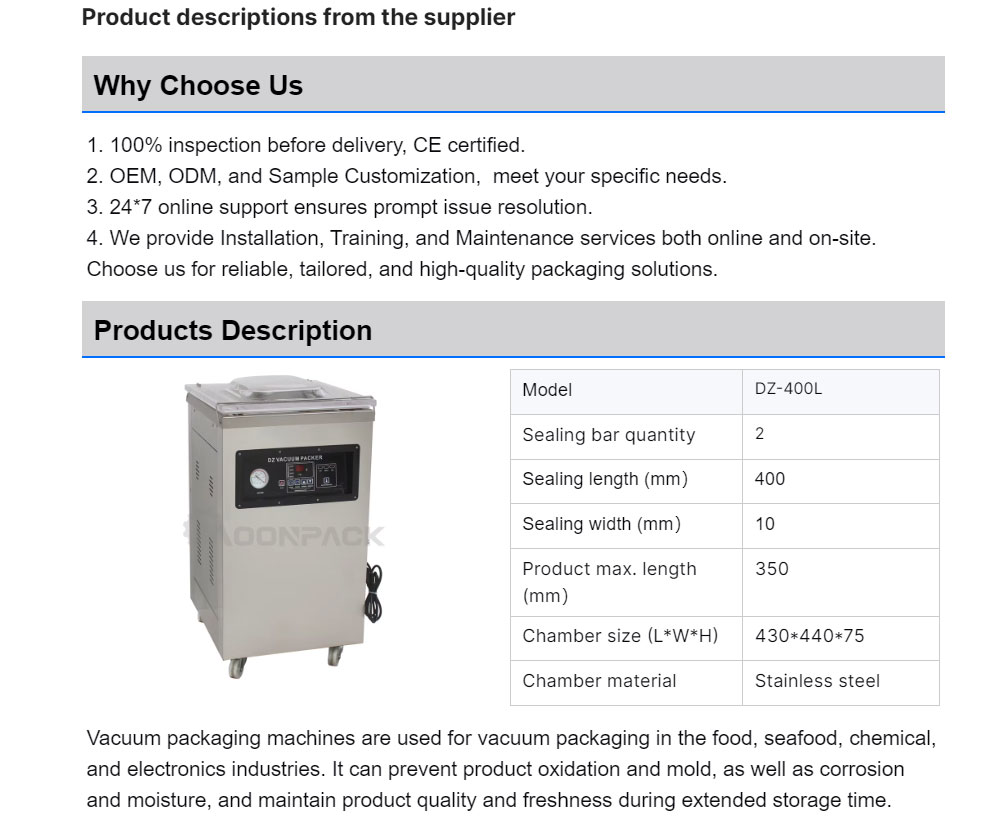 DZ-400L Aluminum Foil Bag Pouch Sealing Vacuum Packing Machine Single Chamber