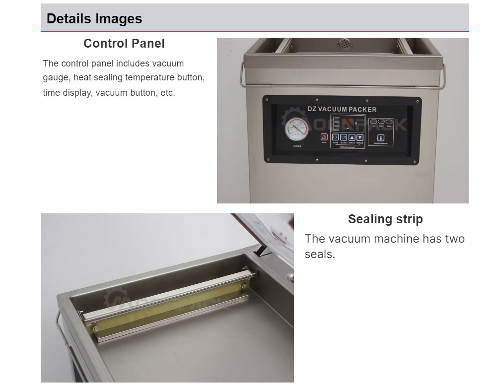 Vacuum packaging machines are used for vacuum packaging in the food, seafood, chemical, and electronics industries. It can prevent product oxidation and mold, as well as corrosion and moisture, and maintain product quality and freshness during extended storage time.