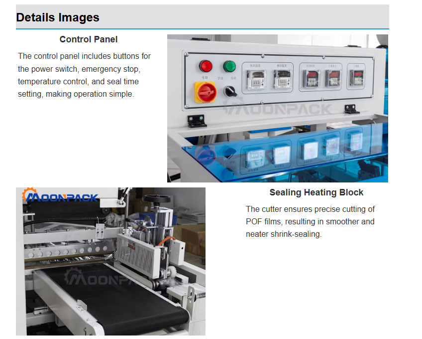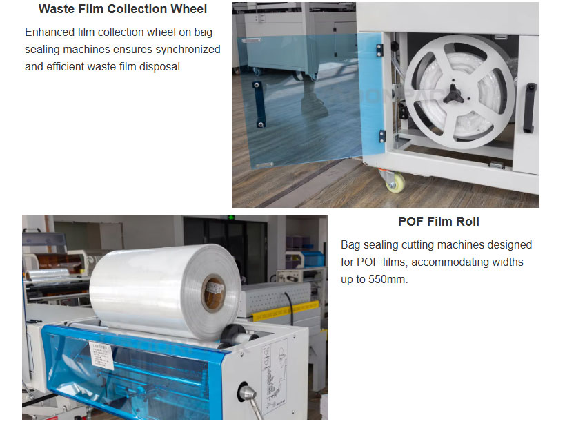 The fully automatic sealing and cutting machine achieves a high degree of automation through automatic conveying, sealing, and shrink packaging, making it suitable for mass production. It uses a constant temperature heating system, resulting in a neat and beautiful seal that is not prone to cracking. It is suitable for packaging films made of POF material.