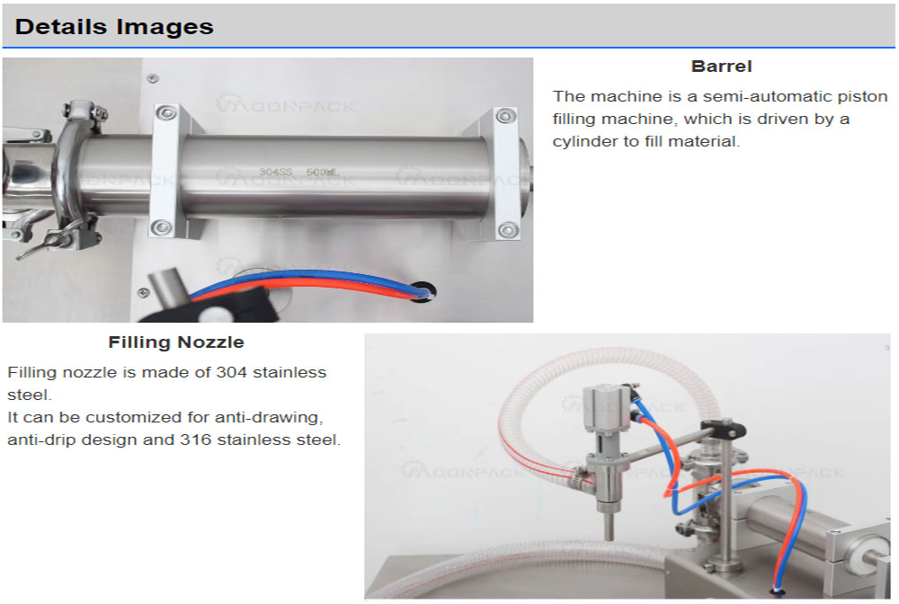 4. There are filling volume adjustment handle, filling speed can be adjusted, filling high precision.
