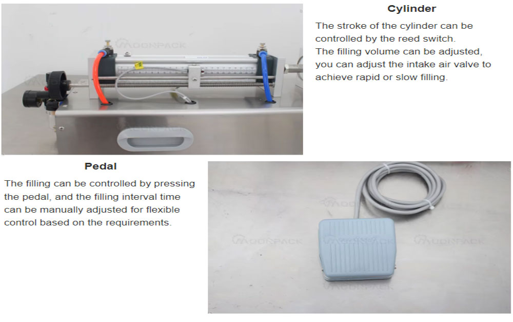 1. This machine has two pneumatic filling ways, foot and automatic, and they can be switched randomly.