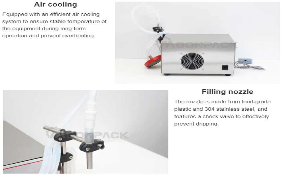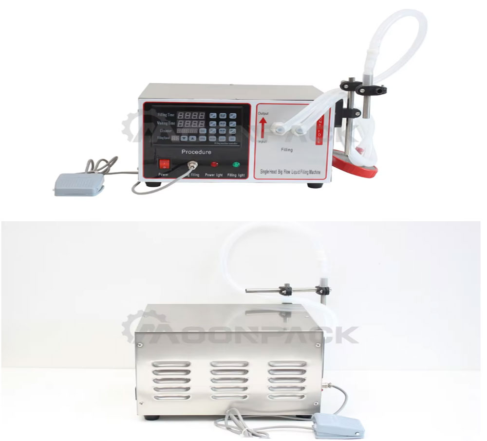 The digital control liquid filling machine is ideal for filling various liquids. It features a user-friendly control panel, making operation simple and efficient. Equipped with a high-flow diaphragm pump, it provides fast flow rates and high precision.、