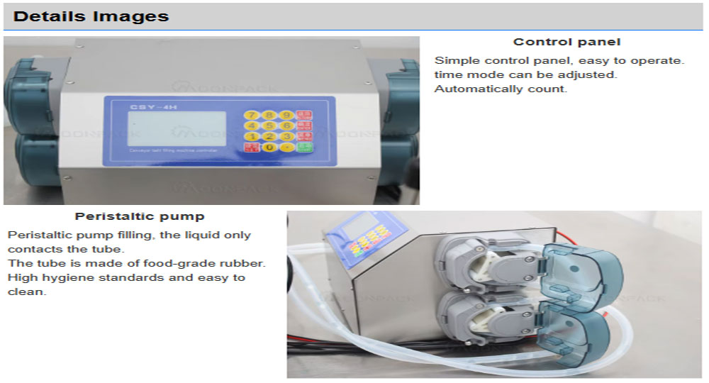 1. It uses a peristaltic pump for filling, making it suitable for pure liquids such as beverages, milk, and water.