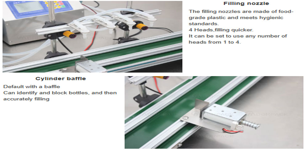 5. Four head filling nozzle: It can be set to use any number of heads from 1 to 4.