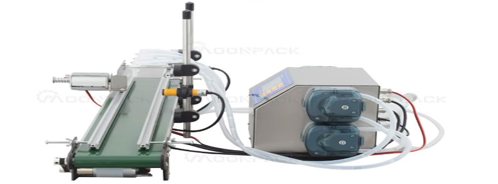 Moonpack MP-4H1200 Glue Oil Peristaltic Pump Filling Machine With Conveyor Belt