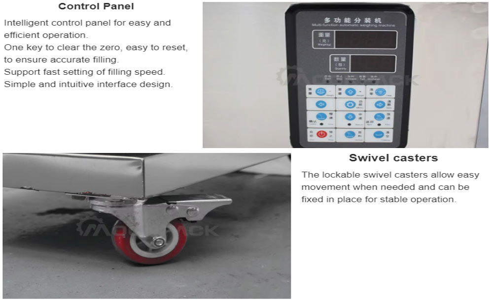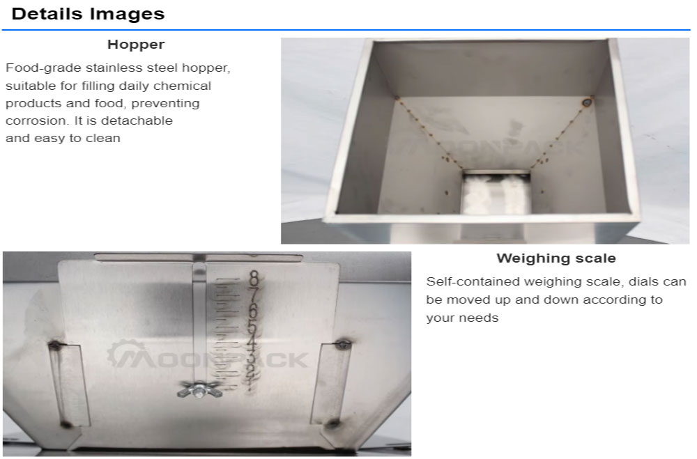 1. Wide range of filling capacity, from 10g to 1000g, to meet different production requirements.