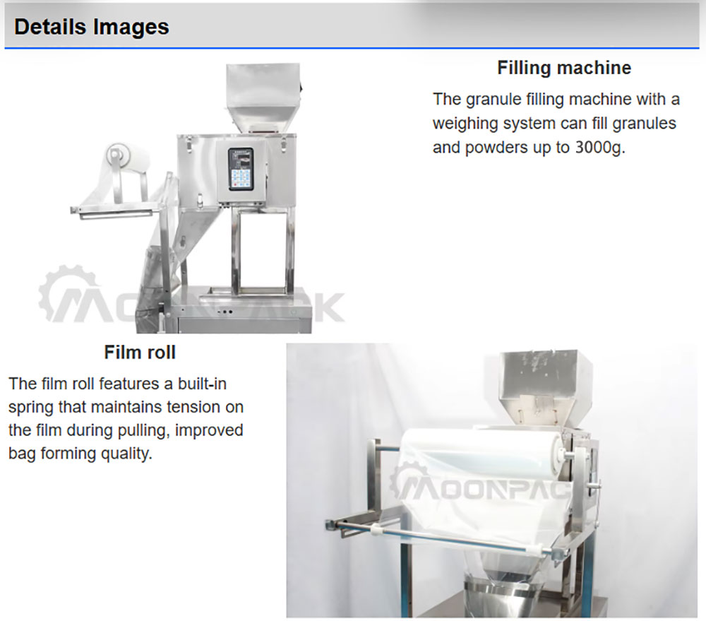 This Multi-Functional machine is ideal for packaging a wide range of products, including rice, peas, nuts, sugar, salt, coffee powder, spice powders, tea powder, and other dry granules. It is also widely used for packaging materials such as powders, grains, goji berries, dates, herbs, diamond jewelry, electronic components, hardware accessories, and more.Designed for flexibility and ease of use, this packaging machine ensures precise weighing, filling, and sealing for high-quality, consistent packaging results.