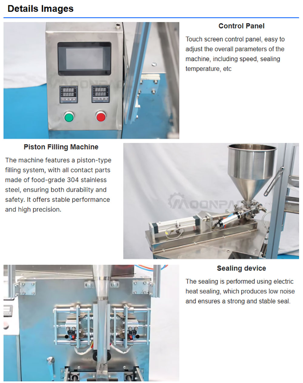 1. The machine adopt the piston filling system is particularly suitable for the filling of high-viscosity materials such as pastes, sauces, and emulsions.