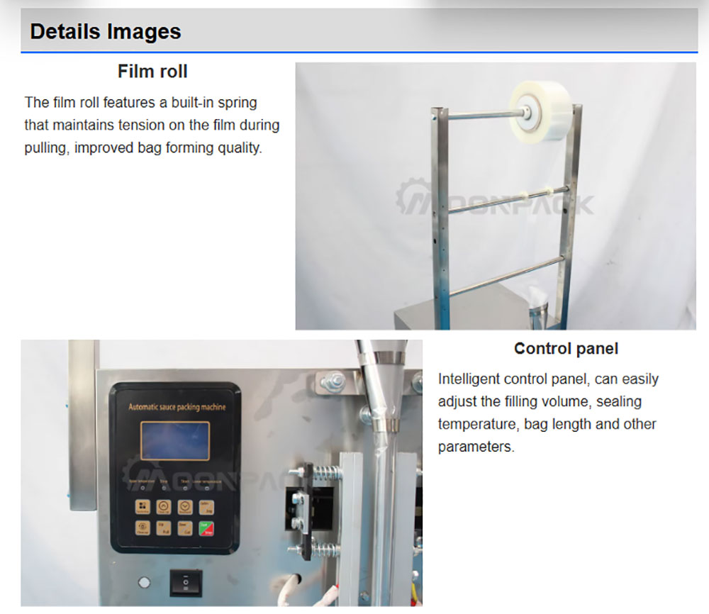 3. Smart control interface allows easy adjustment of filling volume, bag size, and sealing temperature.