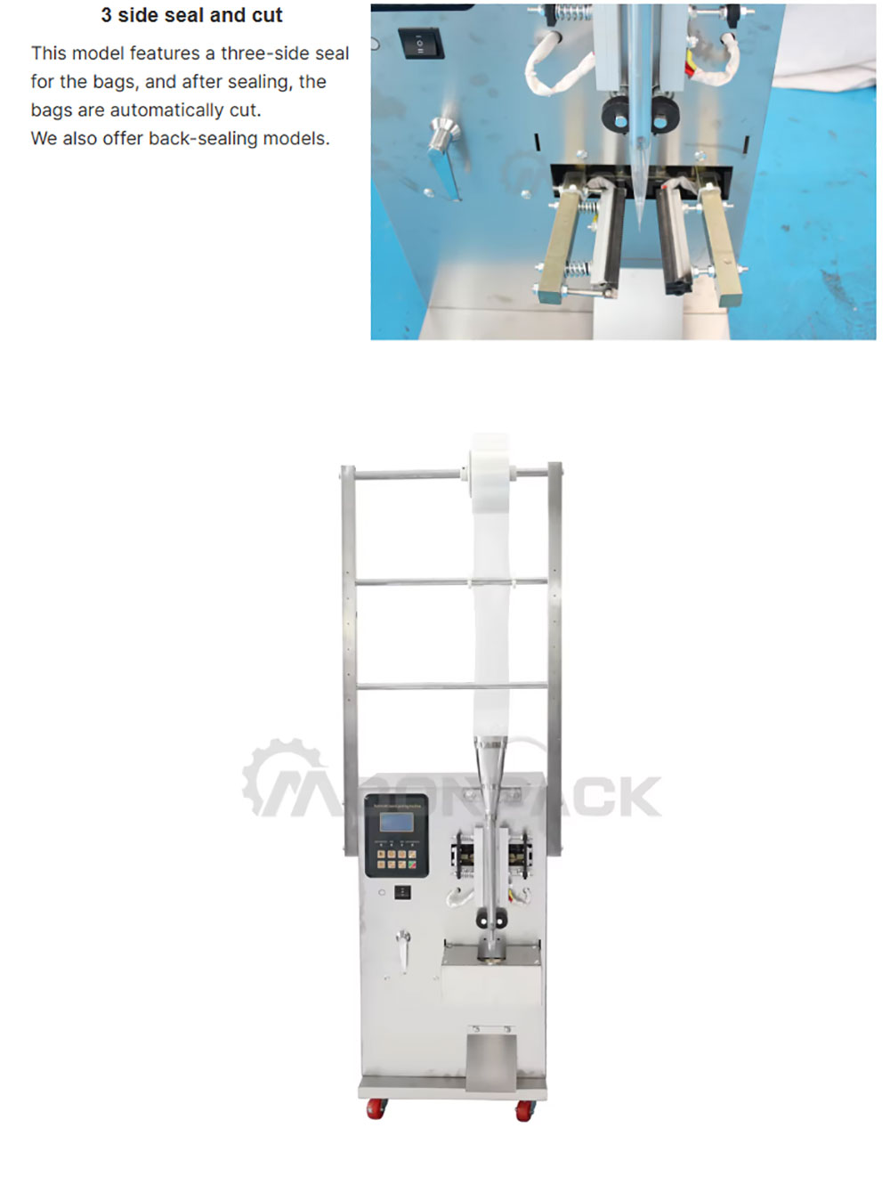 1. Integrates bag forming, filling, sealing, cutting, and counting functions into one machine.