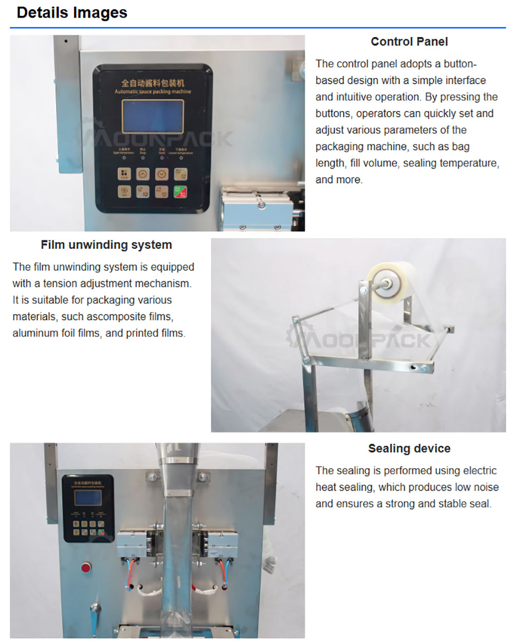 4. Smart control interface allows easy adjustment of filling volume, bag size, and sealing temperature.